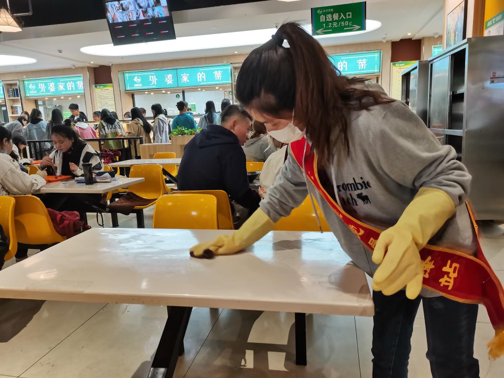 一粥一飯,當思來之不易。在志愿服務的同時,先鋒站的同學們積極宣傳倡導勤儉節約、光盤行動,讓“光盤”成為校園新風尚,弘揚崇儉抑奢的正能量。