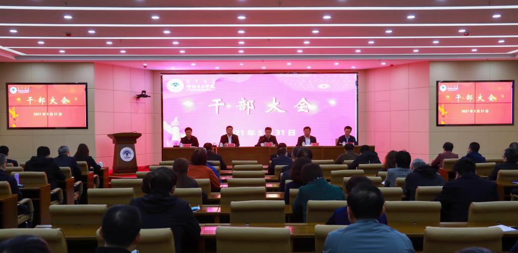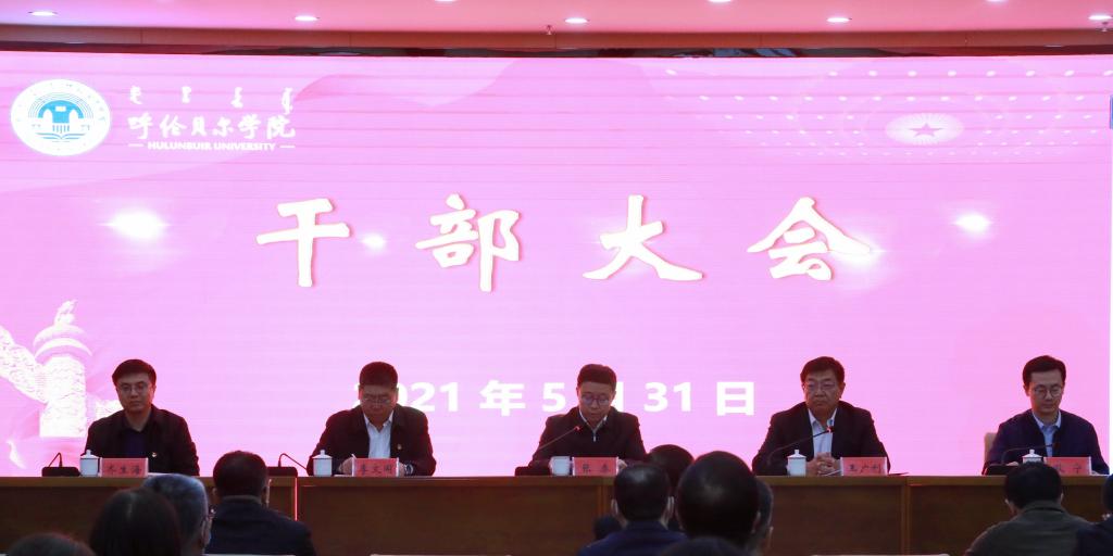 5月31日下午,呼倫貝爾學院召開干部大會,宣布自治區黨委對呼倫貝爾學院領導班子的調整決定。自治區黨委組織部副部長張秦同志出席會議并講話,自治區黨委組織部干部四處四級調研員耿寧同志宣讀任免決定:李文閣同志任呼倫貝爾學院黨委委員、副書記、提名任呼倫貝爾學院院長;烏云達來同志、閆立志同志不再擔任呼倫貝爾學院黨委委員、提名免去呼倫貝爾學院副院長職務。