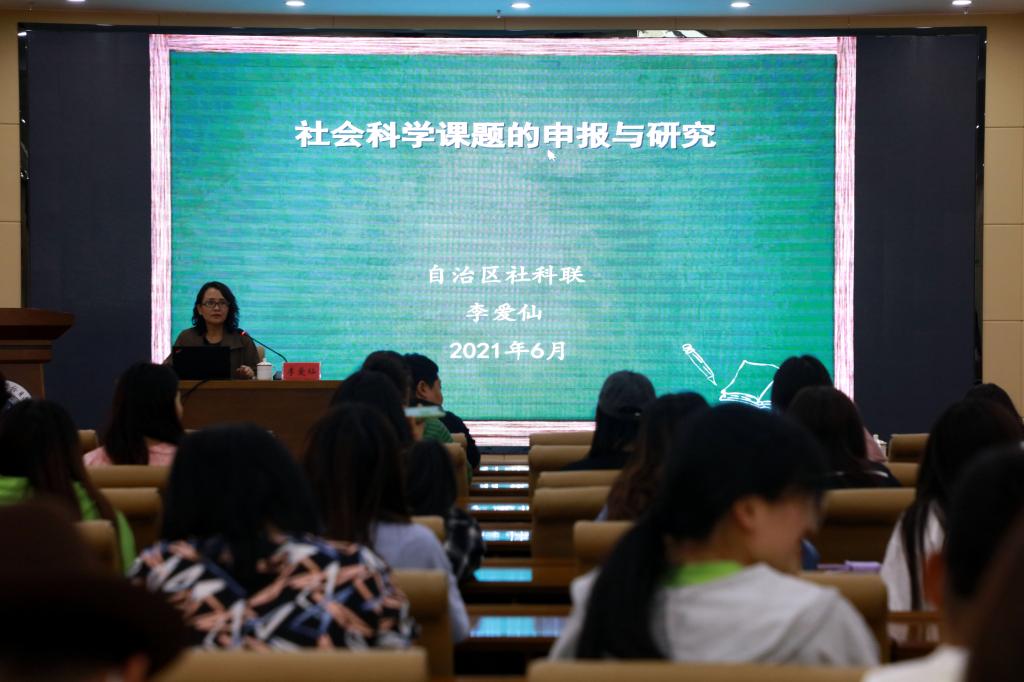 朱曉俊副主席、李愛仙部長在崇文樓A201為我校師生代表做《面向現代化的“十四五發展戰略”》和《社會科學課題的申報和研究》專題講座。