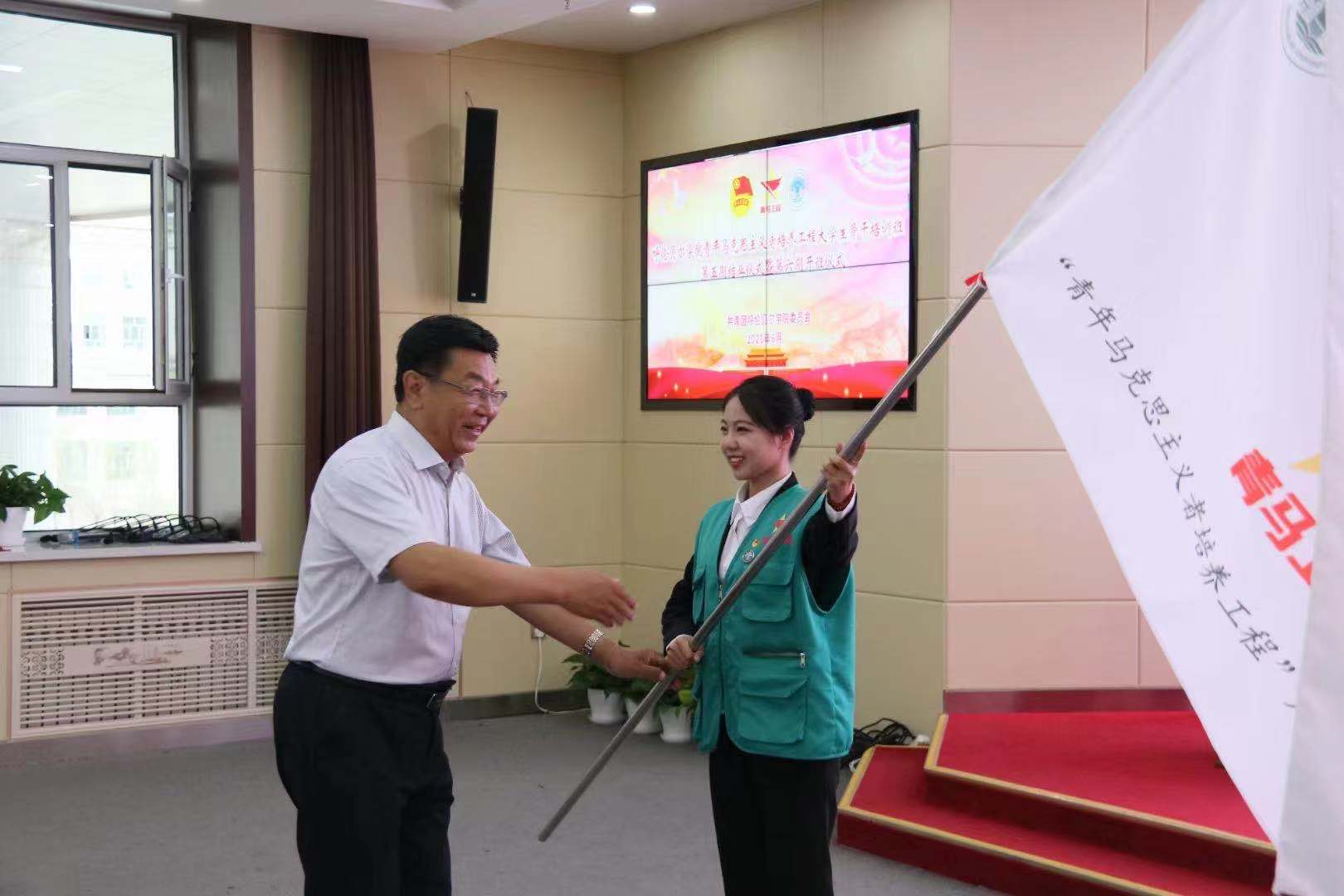 隨后,王廣利書記為新一期青馬班授旗。這面旗幟的傳遞,也是對第六期青馬班學員美好期盼的傳遞。在第六期青馬班全體成員莊嚴的宣誓聲和團歌聲中,活動拉下帷幕。