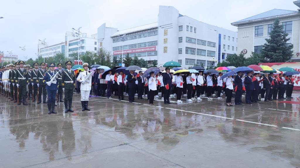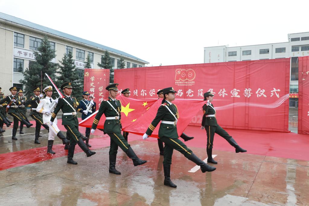 宣誓儀式在莊嚴的國歌聲中拉開序幕,國旗護衛隊邁著矯健的步伐,護送鮮艷的五星紅旗入場,師生整齊列隊,齊唱國歌,行注目禮。黨委書記王廣利帶領全體師生黨員面向鮮艷的黨旗,握緊右拳,鄭重宣誓。誠摯的誓言,表達了他們身為黨員對黨忠誠、永不叛黨的堅定承諾,更表達了全心全意為人民服務、為實現中華民族偉大復興貢獻力量的責任和擔當。