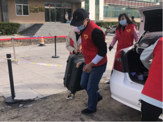 “愛心車隊”成員幫助學生搬運行李