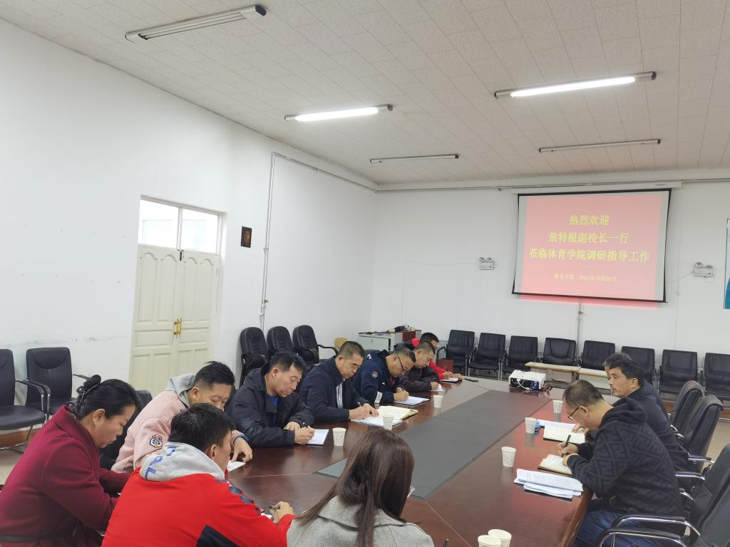 10月26日上午,校黨委委員、副校長敖特根深入體育學(xué)院調(diào)研指導(dǎo)工作。科學(xué)技術(shù)處處長田振江,學(xué)科建設(shè)辦公室副主任李洋陪同。體育學(xué)院領(lǐng)導(dǎo)班子及環(huán)節(jié)干部參加了調(diào)研座談會。