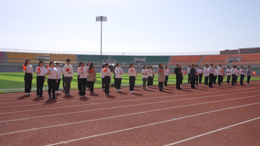 伴隨著雄壯嘹亮的國歌聲,鮮艷的五星紅旗迎著朝陽冉冉升起。現場師生手持小國旗,面向國旗行注目禮,滿懷對祖國無限熱愛和崇高敬意。