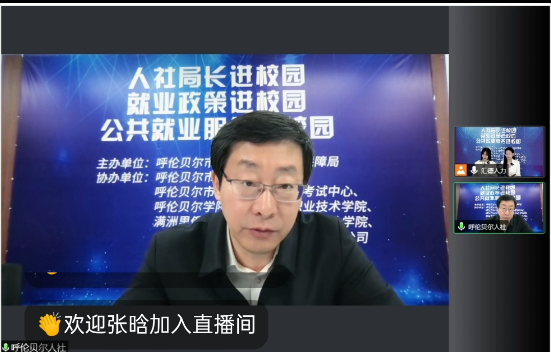 為有效落實“就業(yè)促進周”系列活動安排,在學生不能返校的疫情防控特殊時期,讓2022屆畢業(yè)生更好地了解、掌握就業(yè)創(chuàng)業(yè)政策及相關(guān)知識,5月8日上午,我校與呼倫貝爾市人力資源和社會保障局、呼倫貝爾市就業(yè)服務(wù)中心、呼倫貝爾市人才服務(wù)和人事考試中心聯(lián)合舉辦“就業(yè)政策進校園”宣講活動。全校畢業(yè)生2300余人參加了此次政策宣講會。