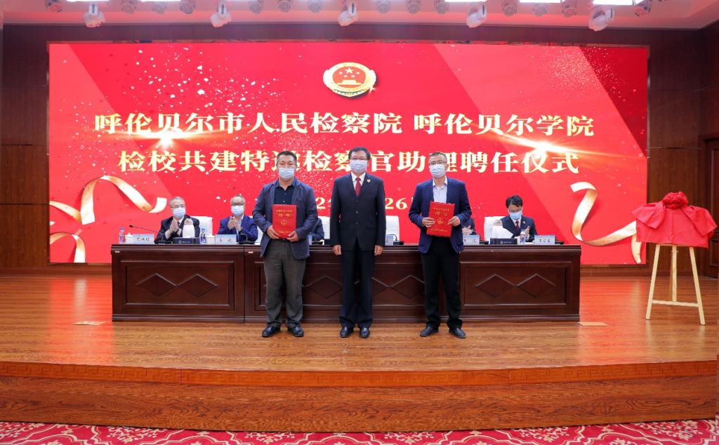 5月26日,我校和呼倫貝爾市檢察院在市檢察院舉行檢校共建簽約暨呼倫貝爾市民事行政公益訴訟檢察綜合研究基地簽約揭牌儀式。我校黨委副書記、校長(zhǎng)李文閣,呼倫貝爾市檢察院黨組書記、檢察長(zhǎng)秦虎出席簽約揭牌儀式。儀式由市檢察院黨組副書記、常務(wù)副檢察長(zhǎng)王達(dá)主持。我校法學(xué)院院長(zhǎng)馬斌、副書記白杰、法學(xué)院三名教師及市檢察院全體干警參加。