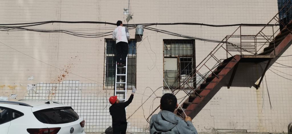 會后,全體黨員同志參加了國際交流中心的廢棄多年網線的清理工作。黨員同志們頂著烈日登高爬梯剪斷廢棄的網線,國際交流中心外墻上的“蜘蛛網”得到了徹底的清理。本次融合黨建主題黨日活動將理論學習與黨員義務勞動相結合,收到了良好的教育效果。
