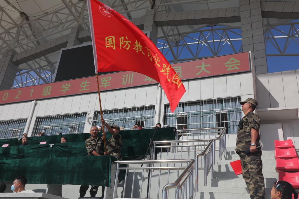 最后,李健處長為呼倫貝爾學(xué)院國防教育實踐團(tuán)授旗。