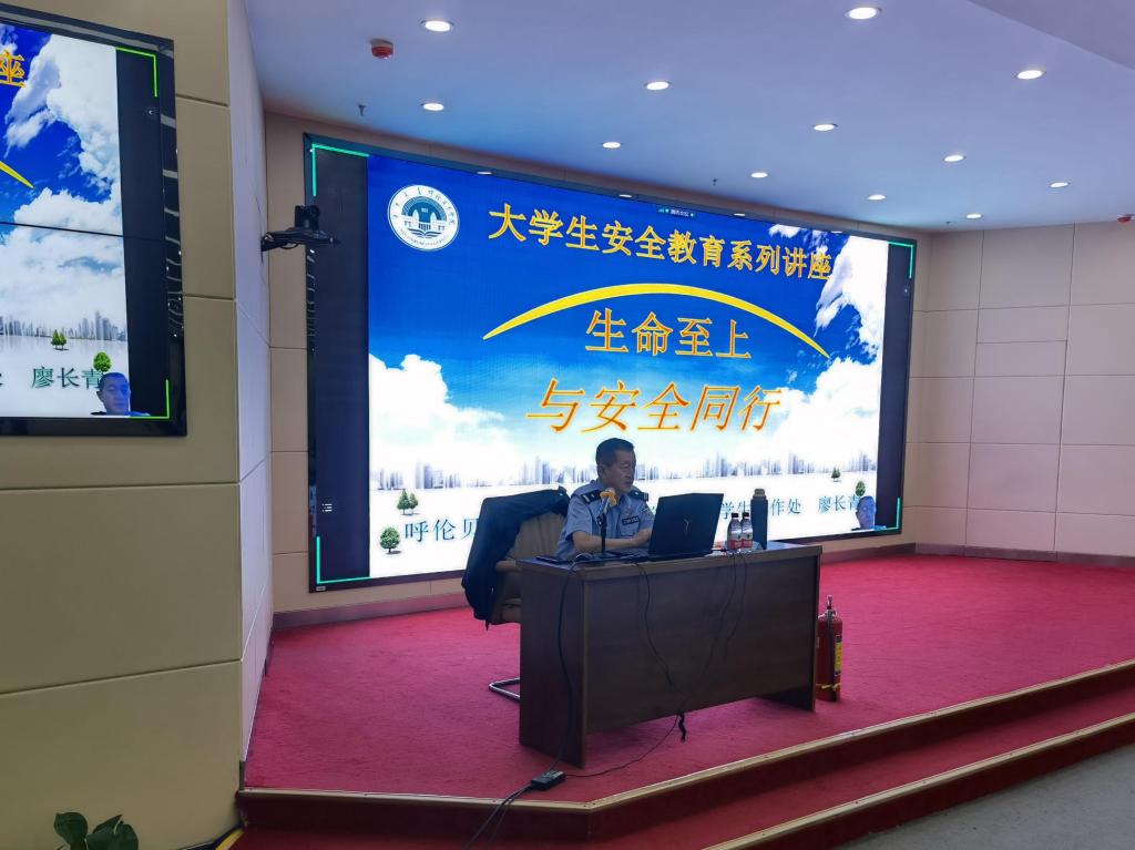 講座中,校園安全管理處廖長青副研究員以“生命至上與安全同行”為題進行講解。他從人身安全、財產安全、心理安全、消防安全、防范新型電信網絡詐騙、防范校園貸、新冠肺炎疫情防控等多方面作了細致的分析和講解。他要求,學生要不斷增強自我保護意識,特別是平時要注意積累相關的安全常識,以便能夠沉著、冷靜地面對危機時刻,進行自我保護和救助他人。