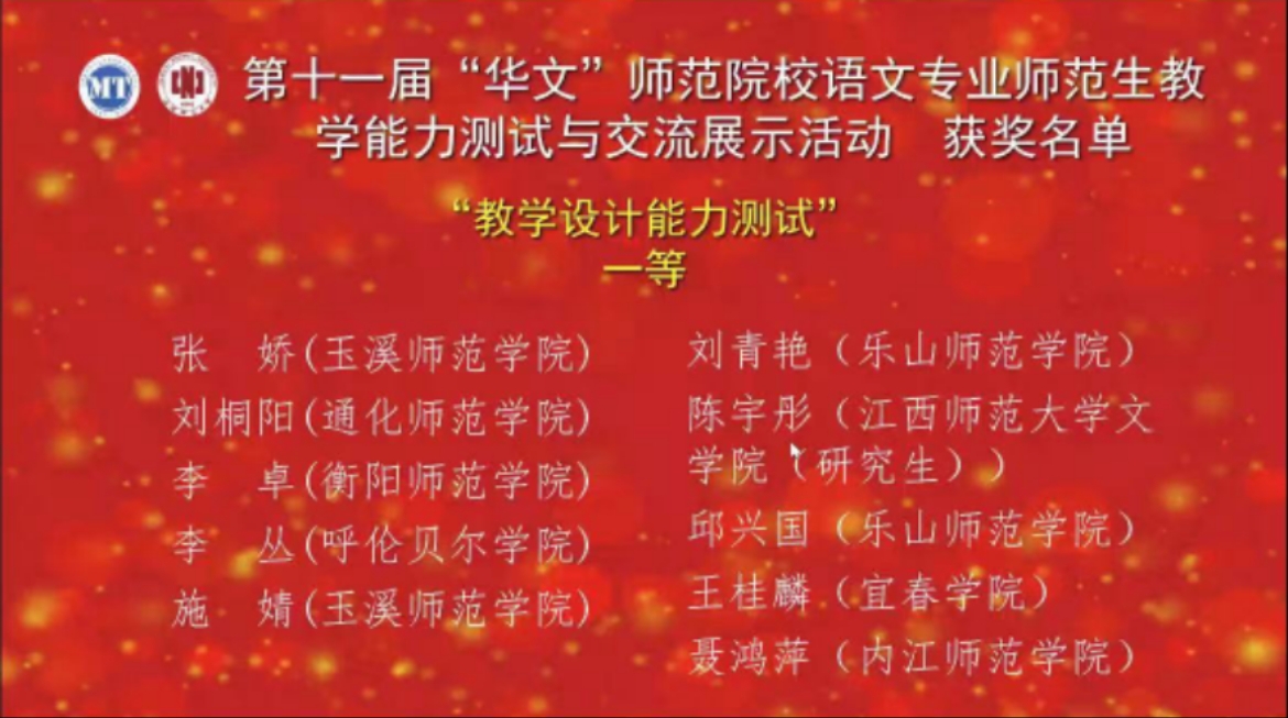 近日獲悉,在中國教育技術協會微格教學專業委員會與江西師范大學聯合舉辦的第十一屆“華文”師范院校語文專業師范生教學能力測試與交流展示活動中,我校4名選手在全國80所師范院校500名選手中脫穎而出,喜獲佳績。