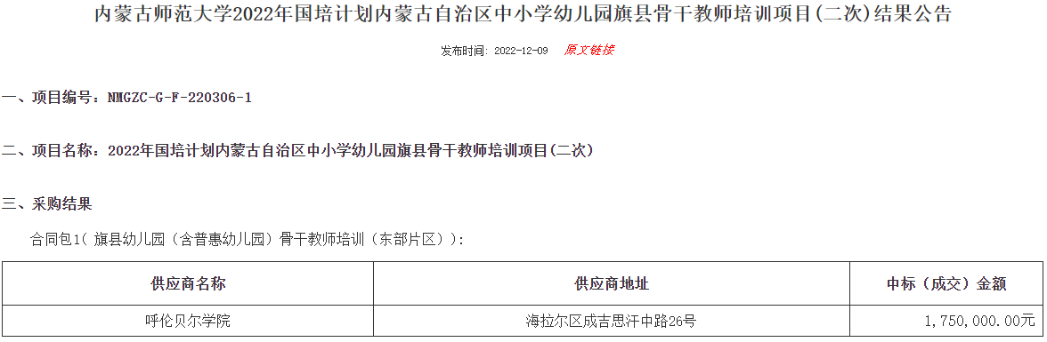 12月9日,內(nèi)蒙古自治區(qū)公共資源交易中心公布《內(nèi)蒙古師范大學(xué)2022年國培計劃內(nèi)蒙古自治區(qū)中小學(xué)幼兒園旗縣骨干教師培訓(xùn)項目(二次)結(jié)果公告》中,我校申報的內(nèi)蒙古旗縣幼兒園(含普惠幼兒園)骨干教師培訓(xùn)(東部片區(qū))、內(nèi)蒙古邊遠(yuǎn)艱苦民族地區(qū)幼兒園頂崗支教培訓(xùn)(東部片區(qū))、旗縣級中學(xué)骨干班主任能力提升培訓(xùn)(東部片區(qū))等3個項目成功中標(biāo),為2022年教師培訓(xùn)立項爭資343萬元,用于860名教師培訓(xùn)。