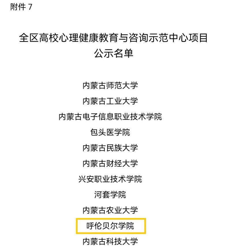 近日,自治區教育廳公示了全區高校心理健康教育與咨詢示范中心項目結果。我校大學生心理健康教育與咨詢中心再次獲評全區高校心理健康教育與咨詢示范中心。