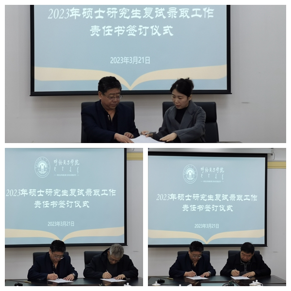 最后,為全面推進復試工作安排,強化主體責任,李文閣校長與復試學院院長簽訂《呼倫貝爾學院2023年碩士研究生招生復試工作責任書》。