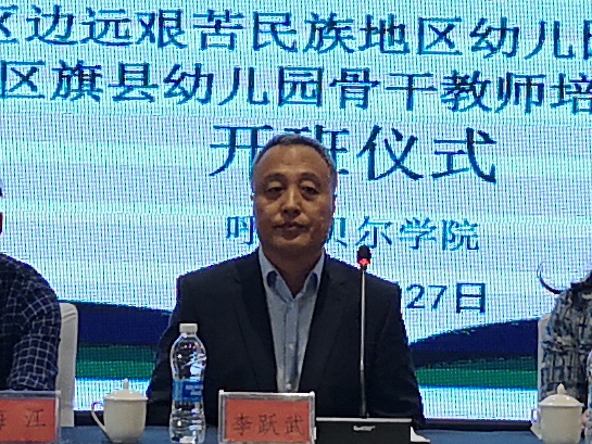 3月27日,由內蒙古自治區中小學幼兒園教師培訓項目執行辦公室主辦、我校承辦的“國培計劃(2022)”——內蒙古自治區邊遠艱苦民族地區幼兒園頂崗支教培訓(東部片區)、“國培計劃(2022)”——內蒙古自治區旗縣幼兒園(含普惠幼兒園)骨干教師培訓項目(東部片區)第二期在凱景嘉華酒店15樓會議室舉行開班儀式。學校黨委委員、副校長李躍武,繼續教育學院院長莎茹莉,教育學院黨總支副書記海江,教育學院教學科研辦公室主任遲艷杰帶領的班主任團隊、授課專家以及通遼市、呼倫貝爾市186名幼兒園教師參加了開班儀式,開班儀式由繼續教育學院副院長王英利主持。
