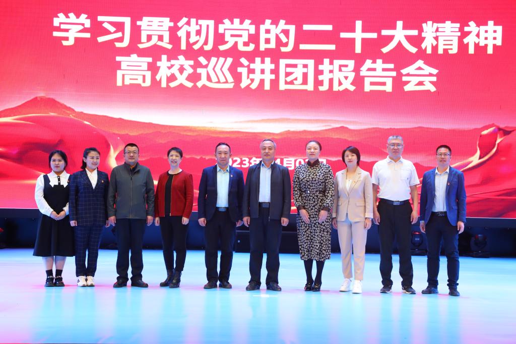 按照自治區(qū)黨委宣傳部、黨委教育工委統(tǒng)一部署,4月2日上午,學(xué)習(xí)貫徹黨的二十大精神高校巡講團(tuán)第二小分隊(duì)走進(jìn)我校宣講。學(xué)校黨委委員、副校長李躍武出席宣講報(bào)告會,黨委委員、宣傳部部長劉秀蘭主持宣講報(bào)告會。學(xué)校相關(guān)職能部門負(fù)責(zé)人、各學(xué)院團(tuán)總支書記、輔導(dǎo)員、思政課教師、學(xué)生代表近500人在藝術(shù)樓音樂廳聆聽了宣講報(bào)告會。