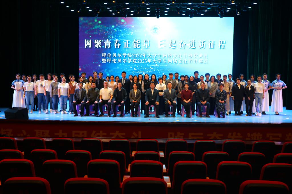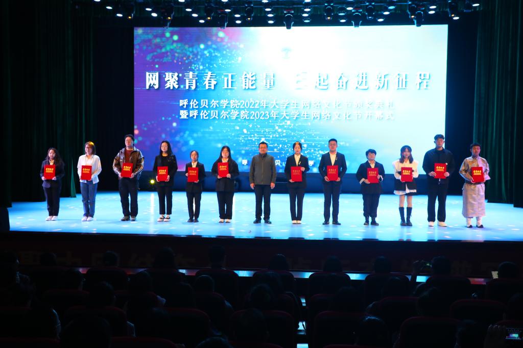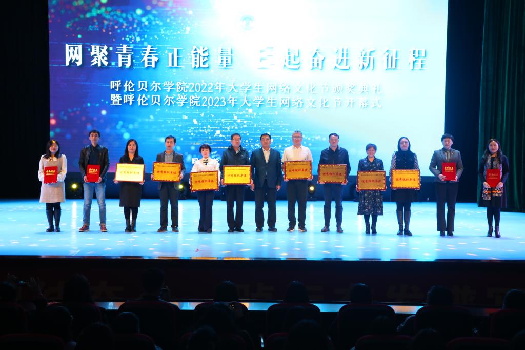 為深入學習貫徹習近平新時代中國特色社會主義思想,切實營造學習貫徹黨的二十大精神的濃厚氛圍,加大優秀網絡文化產品供給力度,推進網絡文明建設,提升網絡文化素養,4月14日上午,由呼倫貝爾學院黨委宣傳部主辦的“網聚青春正能量 E起奮進新征程”呼倫貝爾學院2022年大學生網絡文化節頒獎典禮暨2023年大學生網絡文化節開幕式在音樂廳隆重舉行。呼倫貝爾學院黨委書記王廣利,校黨委委員、副校長敖特根,校黨委委員、組織部部長吳靜怡,校黨委委員、宣傳部部長劉秀蘭以及各學院領導、500余名師生代表一起參加了典禮。