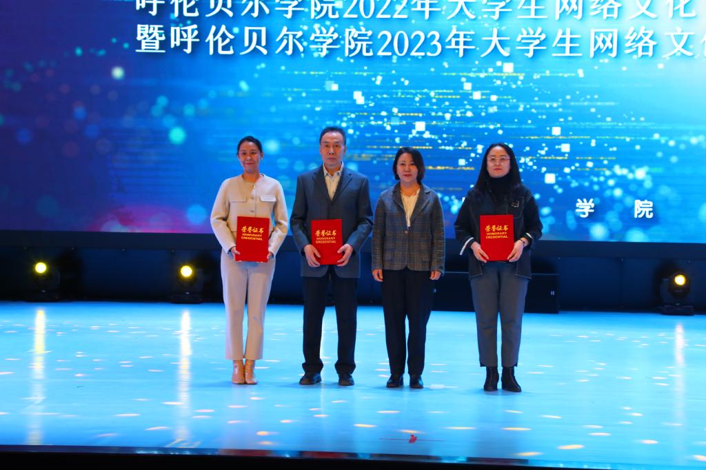 典禮中分別對在第五屆“全國大學生網絡文化節”等國家級大賽和“北疆兒女心向黨”短視頻大賽等自治區級網絡文化活動中獲獎的20余項作品,呼倫貝爾學院2022年大學生網絡文化節和呼倫貝爾學院2022年網絡教育優秀作品推選展示活動中獲獎的作品,以及網絡文化節中表現優異的組織單位和指導教師進行了表彰。