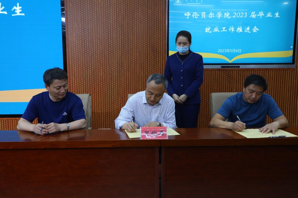 趙小花處長對近期招生就業重點工作進行安排。隨后,李躍武副校長代表學校與各二級學院簽訂《呼倫貝爾學院2023年就業統計工作責任書》。