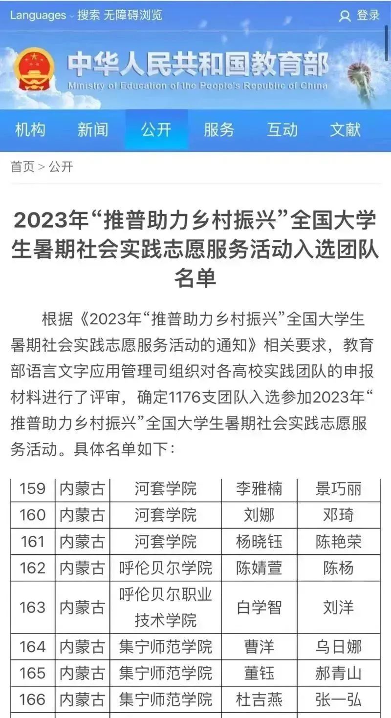 近日,教育部2023年“推普助力鄉村振興”全國大學生暑期社會實踐志愿服務活動入選團隊名單公布,我校“推普夏鄉”實踐團隊成功入選。