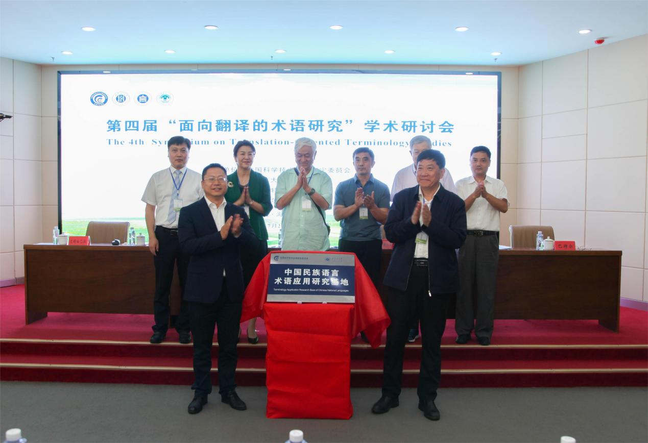 全國科學(xué)技術(shù)名詞審定委員會專職副主任裴亞軍和內(nèi)蒙古大學(xué)黨委委員、副校長額爾很巴雅爾共同為中國民族語言術(shù)語應(yīng)用研究基地揭牌。