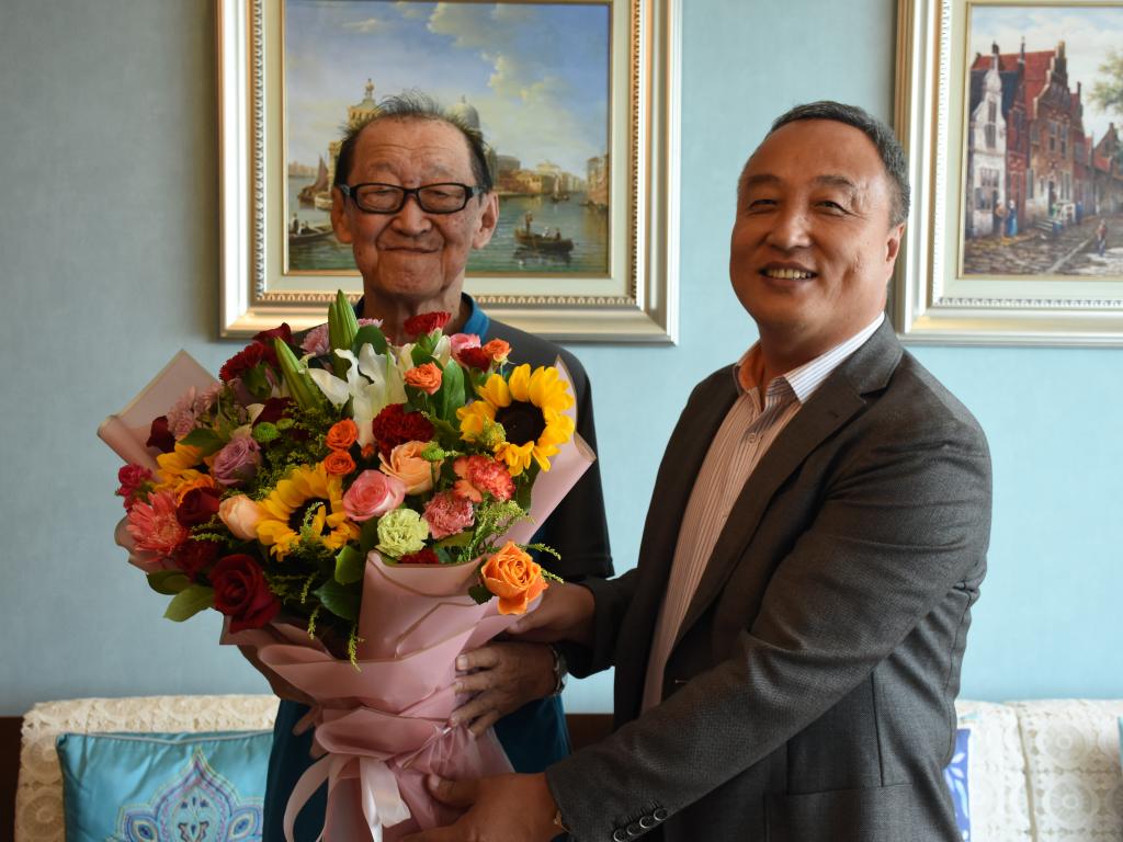 在離休干部姜福昌老師家中,李文閣校長親切地與老人家嘮家常,看到90歲高齡的姜福昌老師依然精神矍鑠,非常高興,他代表學校向姜福昌老師致以節日的問候和祝福,感謝老人家在學校發展過程中作出的貢獻。李文閣校長表示,姜福昌老師為學校教育事業辛苦了一輩子,奉獻了一輩子,為學校的發展作出了貢獻,是學校的寶貴財富,希望姜福昌老師保重身體,能一如既往地關注和支持學校的發展,多提寶貴意見和建議。