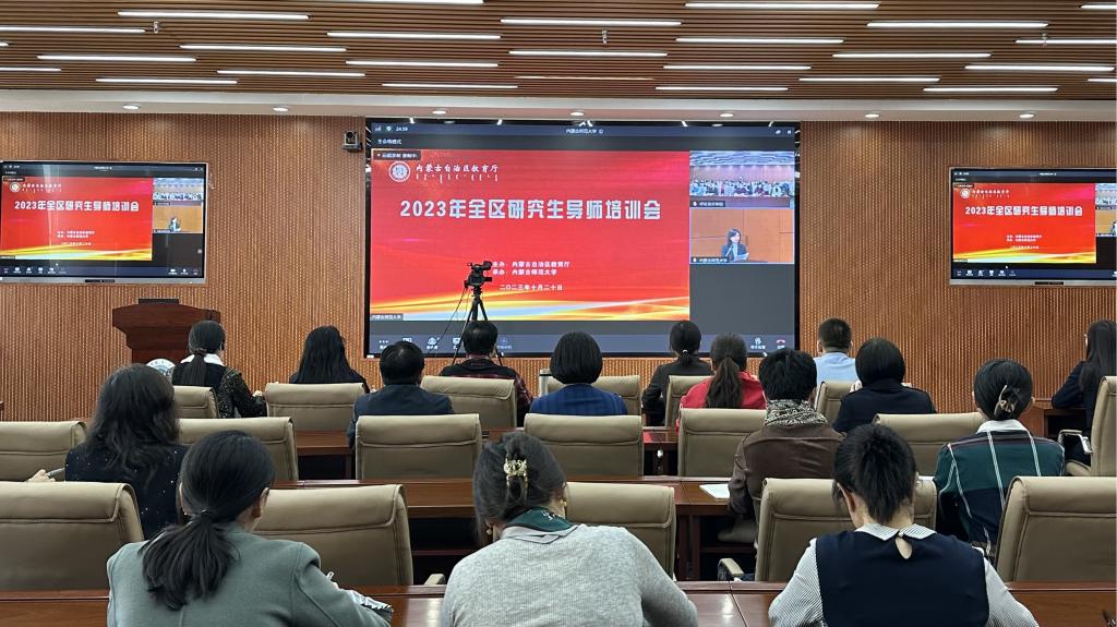 10月20日下午,自治區(qū)教育廳組織召開(kāi)2023年全區(qū)研究生導(dǎo)師培訓(xùn)會(huì)。會(huì)議在內(nèi)蒙古師范大學(xué)設(shè)主會(huì)場(chǎng),我校在崇文樓A501會(huì)議室設(shè)立分會(huì)場(chǎng)。校黨委委員、副校長(zhǎng)敖特根,各研究生培養(yǎng)單位院長(zhǎng)、分管研究生教育工作副院長(zhǎng)、研究生導(dǎo)師及研究生處全體工作人員參加了會(huì)議。