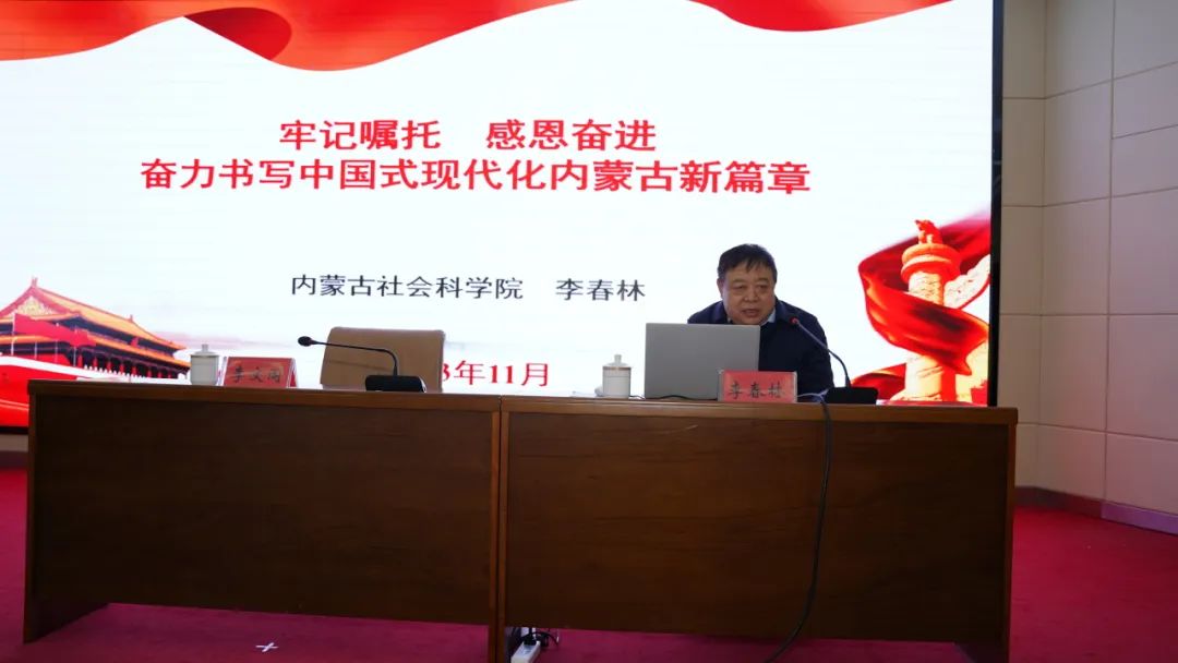 本次讀書班邀請內蒙古社會科學院原院長、二級教授李春林研究員作《牢記囑托 感恩奮進 奮力書寫中國式現代化內蒙古新篇章》專題輔導報告。