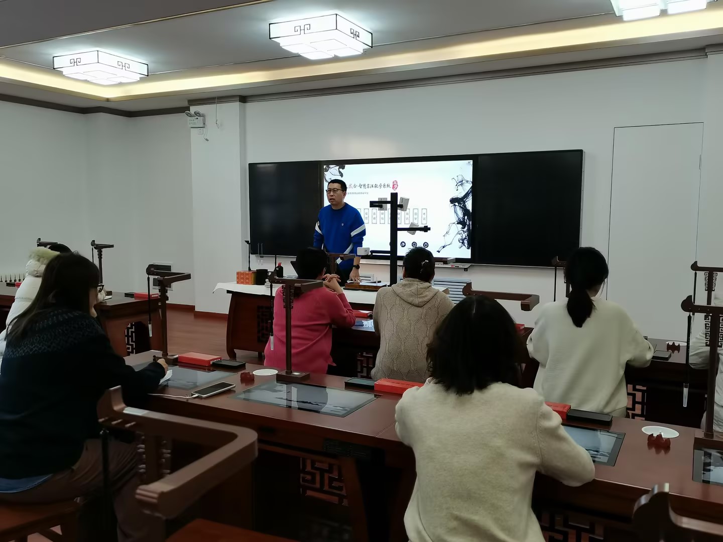 為滿足師范專業化發展需要,加強師范生綜合技能訓練,提升師范生教育教學綜合能力和素質,結合我校師范教育專業辦學優勢,積極推進師范生教學平臺建設。我校將崇文樓A401改造成了師范生技能訓練中心,并于2023年11月底建成。智慧實體空間部分由教學技能訓練室、書法教室等各種功能室組成。其中,教學技能訓練室5間、軟硬筆智慧書法實訓室1間。