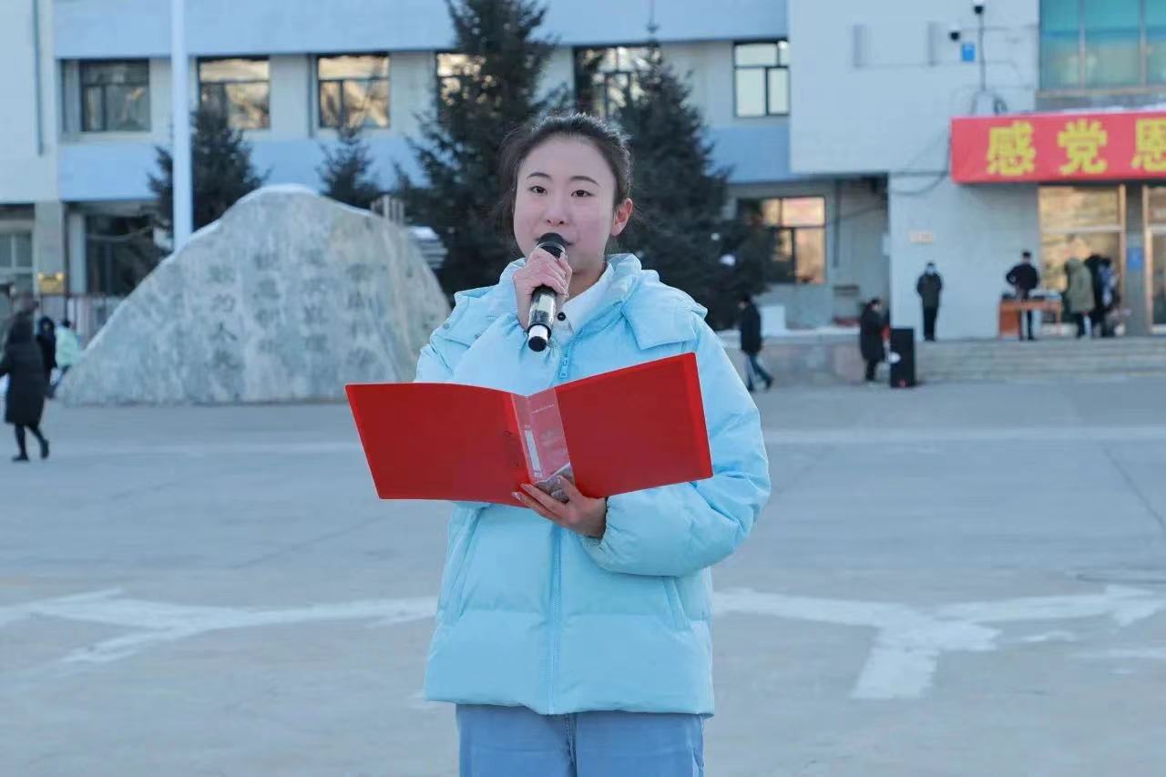 李文閣為師生講授“開學(xué)第一課”。他代表學(xué)校黨委,向辛勤工作在教育教學(xué)一線的全體教職員工,向勤奮學(xué)習(xí)、努力進(jìn)取的同學(xué)們,致以親切的問候和良好的祝愿;對(duì)“十四冬”870名志愿者、100名演員、48名帶隊(duì)教師以及默默支持“十四冬”工作的師生表示崇高的敬意和衷心的感謝。他向全體學(xué)生提出三點(diǎn)希望:一是希望同學(xué)們立志高遠(yuǎn),勇于擔(dān)當(dāng);二是希望同學(xué)們勤奮學(xué)習(xí),追求卓越;三是希望同學(xué)們團(tuán)結(jié)協(xié)作,共同進(jìn)步。他希望,全體師生能夠以升旗儀式為契機(jī),進(jìn)一步激發(fā)愛國(guó)熱情、增強(qiáng)民族自豪感,以更加飽滿的熱情和昂揚(yáng)的斗志,投身于學(xué)習(xí)、工作和創(chuàng)新實(shí)踐中,為實(shí)現(xiàn)中華民族偉大復(fù)興的中國(guó)夢(mèng)而不懈奮斗。