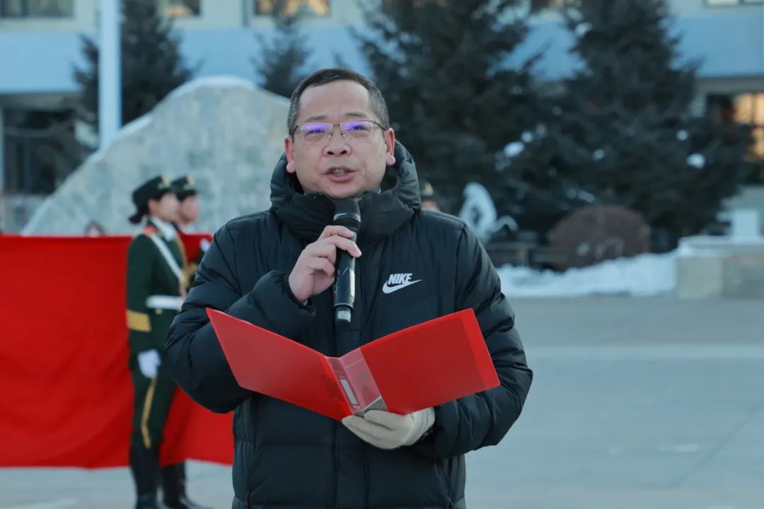 為學(xué)習(xí)貫徹落實(shí)習(xí)近平總書記對(duì)內(nèi)蒙古的重要指示精神,以鑄牢中華民族共同體意識(shí)為一切工作的主線,全力辦好兩件大事,教育引導(dǎo)全校師生堅(jiān)定不移感黨恩、聽黨話、跟黨走,培育具有家國(guó)情懷、過硬本領(lǐng)、擔(dān)當(dāng)民族復(fù)興大任的時(shí)代新人。3月4日,我校在尚行樓門前廣場(chǎng)舉行2024年春季學(xué)期“開學(xué)第一課”暨“同升國(guó)旗 同唱國(guó)歌”升國(guó)旗儀式。校黨委書記李文閣,校黨委副書記、校長(zhǎng)張玉柱,校黨委副書記張宏天,校黨委委員、副校長(zhǎng)李躍武、高樂、尹立軍以及相關(guān)職能部門負(fù)責(zé)人,各學(xué)院領(lǐng)導(dǎo)班子、輔導(dǎo)員及900名學(xué)生代表參加儀式。張玉柱主持升旗儀式。