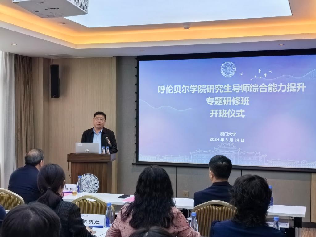 李文閣作了開班動員講話。他代表呼倫貝爾學院向廈門大學教育研究院表示衷心感謝。他強調,研究生教育作為高等教育的重要組成部分,對于培養高層次創新人才、推動社會進步和科技發展具有舉足輕重的作用。我校作為呼倫貝爾地區唯一一所開展研究生教育的高校,承擔為地方培養高層次高素質人才的重要職能。大力發展研究生教育既是學校必須承擔的育人職責和政治使命,也是持續推進學科專業建設、提高人才培養質量和辦學實力的重要抓手。他要求,廣大學員要充分認識我校辦好研究生教育的重要意義,珍惜難得的學習機會,要在培訓中用心體悟、思考、吸收,并把所學運用到實際工作中,要在實踐運用中不斷積累、不斷精進、不斷提高,要始終堅持立德修身、嚴謹治學、為研究生教育事業發展作出更大貢獻。
