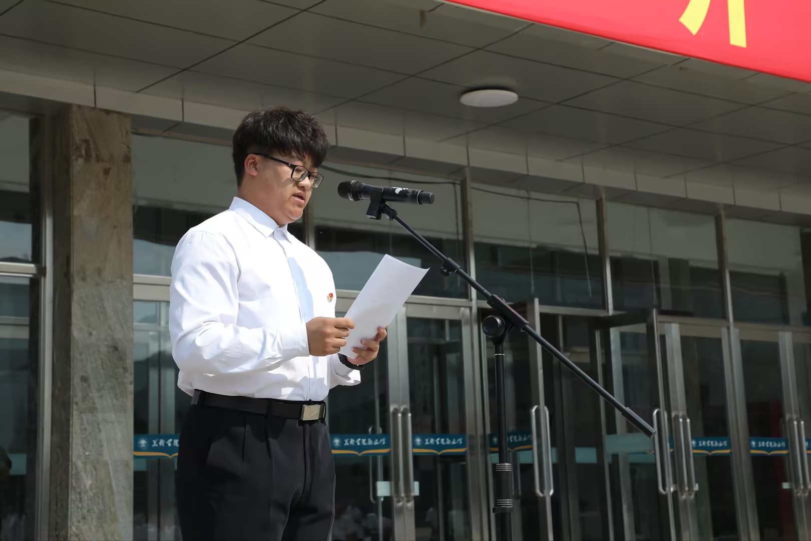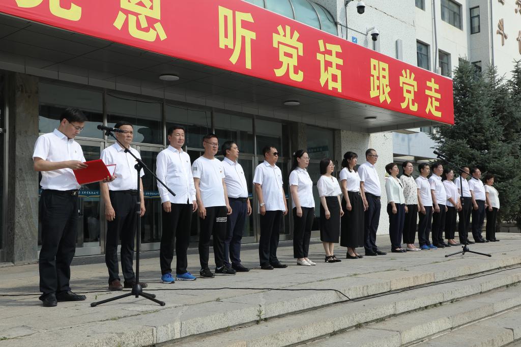 郝曉寬宣讀預備黨員名單。231名預備黨員和參加儀式的全體黨員面向黨旗莊嚴宣誓。