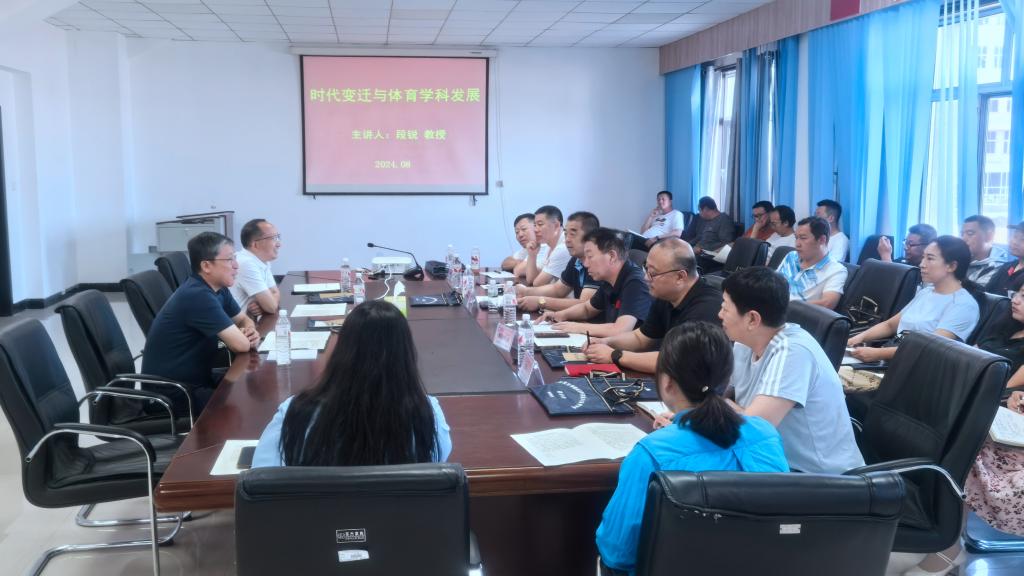 為加強學科建設,破解發展瓶頸,促進學校體育學科的高質量發展,8月14日至17日,我校體育學院(冰雪運動學院)成功舉辦了呼倫貝爾學院體育學科發展與學院高效治理研討會。本次會議邀請了華南師范大學王庚教授、段銳教授、楊忠偉教授、王偉教授等4名專家進行了講座與學術交流。校黨委委員、副校長尹立軍,體育學院(冰雪運動學院)全部領導班子成員及教師參加了本次研討會。會議由體育學院(冰雪運動學院)院長李曉峰主持。