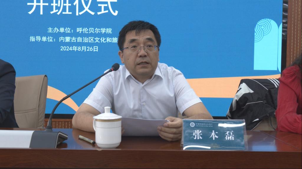 2024年8月26日上午,由文化和旅游部、教育部、人力資源和社會(huì)保障部主辦、內(nèi)蒙古自治區(qū)文化和旅游廳作為指導(dǎo)單位、呼倫貝爾學(xué)院承辦的中國(guó)非物質(zhì)文化遺產(chǎn)傳承人研修培訓(xùn)計(jì)劃“樺樹(shù)皮制作技藝”培訓(xùn)班開(kāi)班儀式在呼倫貝爾學(xué)院舉行。呼倫貝爾學(xué)院黨委副書(shū)記、校長(zhǎng)張玉柱,黨委委員、副校長(zhǎng)敖特根,呼倫貝爾市文化旅游廣電局黨組成員、副局長(zhǎng)張本磊,呼倫貝爾市文化旅游廣電局、呼倫貝爾市文化館相關(guān)負(fù)責(zé)人、呼倫貝爾學(xué)院相關(guān)部門負(fù)責(zé)人、國(guó)家級(jí)樺樹(shù)皮制作技藝傳承人阿基倫及培訓(xùn)教學(xué)管理團(tuán)隊(duì)、全體學(xué)員參加開(kāi)班儀式。開(kāi)班儀式由呼倫貝爾學(xué)院鄉(xiāng)村振興研究中心主任張玉樁主持。