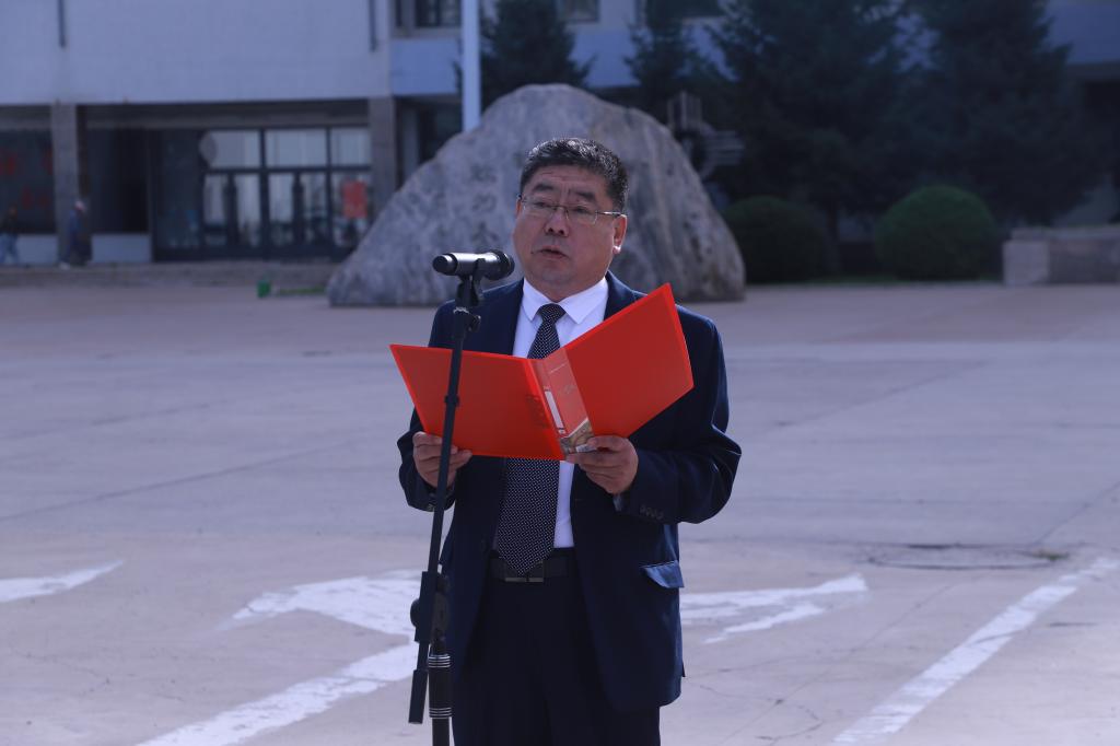 8月26日,呼倫貝爾學(xué)院師生代表齊聚尚行樓前廣場(chǎng),舉行2024年秋季學(xué)期“開學(xué)第一課”暨升國(guó)旗儀式,引領(lǐng)全校師生以昂揚(yáng)的姿態(tài)凝聚奮進(jìn)力量,以穩(wěn)健的步伐邁進(jìn)新學(xué)期。校黨委書記李文閣,校黨委副書記、校長(zhǎng)張玉柱,校黨委副書記張宏天,校黨委委員、紀(jì)委書記、監(jiān)察專員岳勇,校黨委委員、副校長(zhǎng)敖特根、李躍武、高樂、尹立軍出席,與師生代表參加儀式。張玉柱主持儀式。