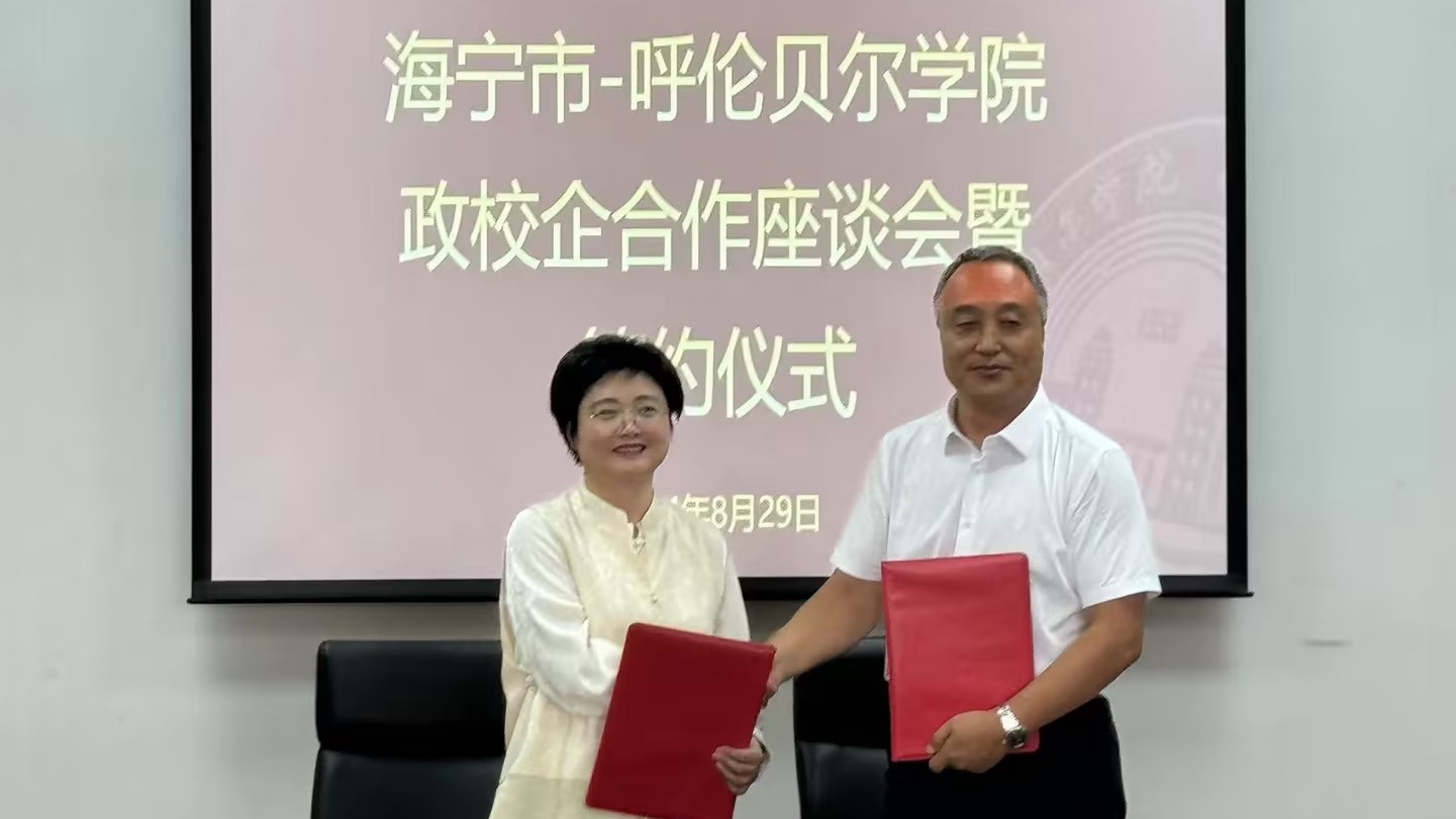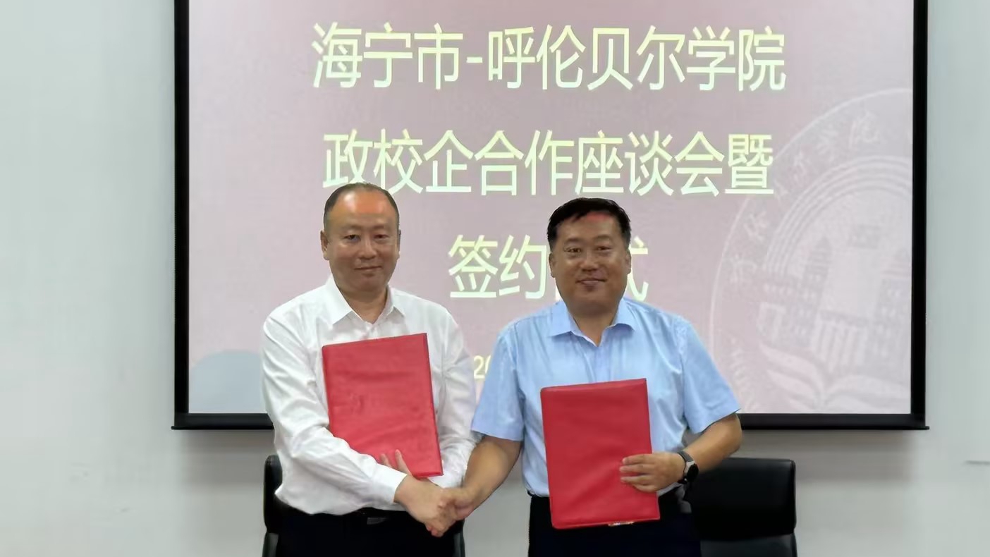 8月29日,海寧市·呼倫貝爾學院政校企合作座談會暨簽約儀式在逸夫樓419會議室舉行。學校黨委委員、副校長李躍武、尹立軍出席座談會,相關部門及二級學院負責人參加會議。李躍武、尹立軍分別代表我校與海寧市政企各界簽署校地、校企合作協議。