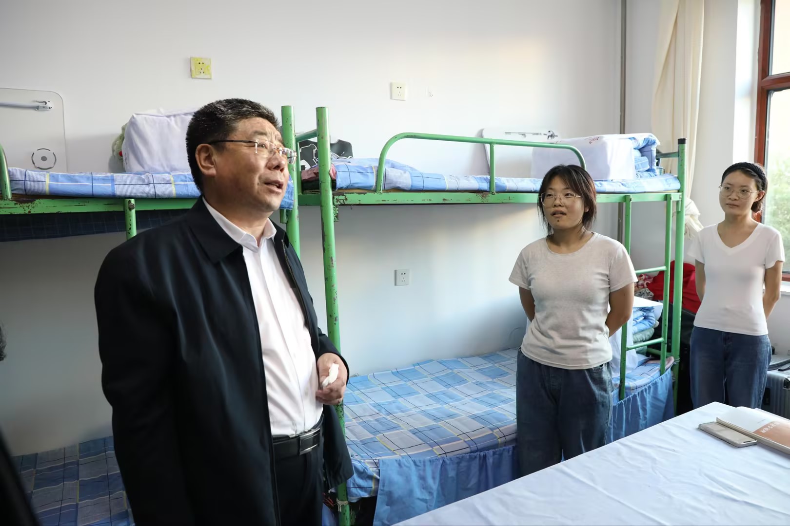 走訪中,李文閣仔細(xì)察看宿舍居住環(huán)境、配套設(shè)施,并與馬克思主義學(xué)院2023級(jí)學(xué)生親切交談,詢問(wèn)同學(xué)們?cè)趯W(xué)習(xí)生活等方面情況,鼓勵(lì)同學(xué)們相互學(xué)習(xí),共同進(jìn)步,努力拼搏,向成為“學(xué)霸宿舍”努力。他表示,學(xué)校將一如既往地關(guān)心和關(guān)注學(xué)生的學(xué)習(xí)生活,為同學(xué)們提供更加優(yōu)質(zhì)的教育資源和服務(wù)保障。李文閣書記一句句貼心的問(wèn)候,激勵(lì)的話語(yǔ),溫暖著同學(xué)們的心。