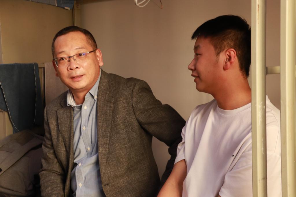 張玉柱還走訪了2024級采礦工程校企合作訂單班的宿舍,與同學們暢談入學感受,詢問生活情況。“同學們,家是哪里的?”“軍訓累不累?”“宿舍住得習不習慣?”“食堂飯菜是否合胃口?”一句句殷切關懷,一聲聲暖心問候,讓同學們倍感親切和溫暖。他向同學們介紹了畢業后即將進入企業的基本情況,鼓勵同學們在校企合作的平臺上珍惜機會、勤奮學習、樂于實踐,為進入企業工作奠定堅實的基礎。最后,張玉柱分享了自己的學習經驗和人生感悟,勉勵同學們樹立正確的人生觀、世界觀和價值觀,積極參與各類活動,提升個人綜合素養。