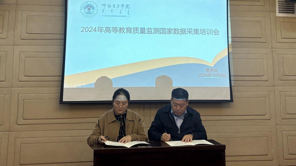 會上,尹立軍強調(diào),一要高度重視數(shù)據(jù)填報工作。本次數(shù)據(jù)采集工作是本科教育教學審核評估工作的重點內(nèi)容,各部門、各學院務(wù)必要精準掌握數(shù)據(jù)指標內(nèi)涵,確保采集和填報的數(shù)據(jù)真實準確。二要加強協(xié)同配合,各相關(guān)部門需緊密協(xié)作,有效溝通,確保數(shù)據(jù)科學合理,全面反映學校的辦學能力和水平。三要明確責任歸屬,科學合理規(guī)劃填報周期和時間點,確保數(shù)據(jù)的準確錄入和嚴格審核。會議中,職能部門、二級學院負責人代表與尹立軍副校長代表學校共同簽署了《呼倫貝爾學院2024年高等教育質(zhì)量監(jiān)測國家數(shù)據(jù)平臺數(shù)據(jù)采集工作責任書》,進一步明確了填報任務(wù)與責任分工。
