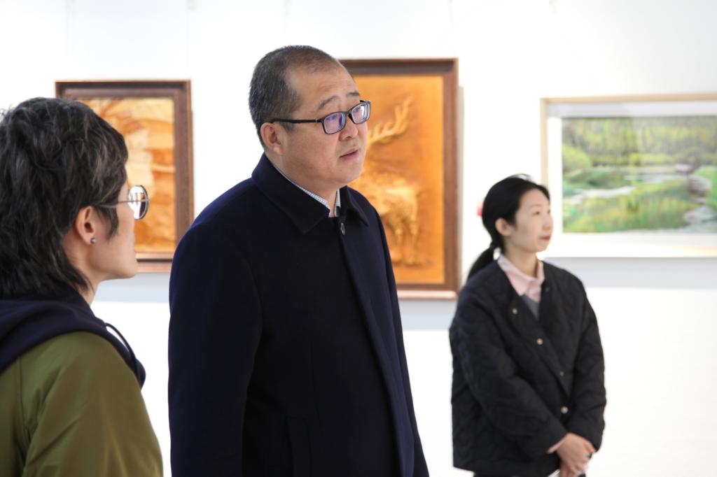 從色彩斑斕的油畫到淡雅飄逸的水彩畫,從清新典雅的國畫到栩栩如生的皮雕畫,從傳統的蠟染到精湛的掐絲藝術,這些畫作,如同一扇扇窗,不僅展現了中華民族悠久的歷史和燦爛的文化,更深刻地揭示了五十六個民族血脈相連、命運與共的深厚情誼,將中華民族多元一體的文化風貌和海拉爾區各民族和諧共融的美好圖景呈現得淋漓盡致。