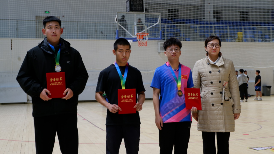 在男子單打比賽項目中,體育學院(冰雪運動學院)的李兆峰同學獲得冠軍,法學與經濟管理學院的王彥凱同學獲得亞軍,法學與經濟管理學院的劉凱同學獲得季軍。