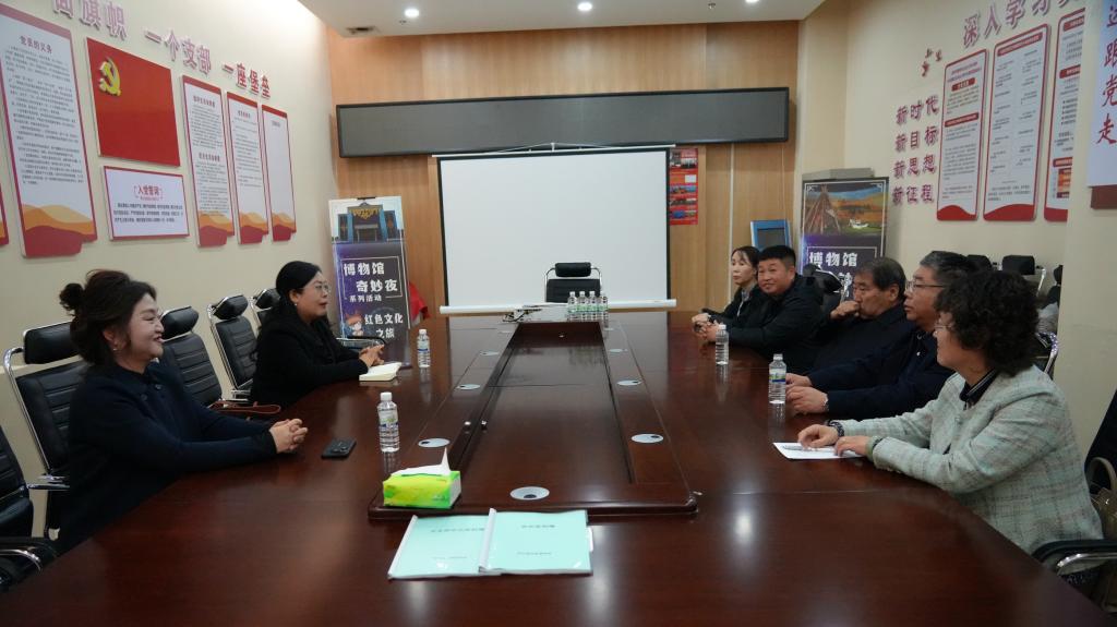 10月31日下午,考察組來到鄂倫春民族博物館。該館是呼倫貝爾市第一座博物館,始建于1991年,現(xiàn)有藏品1577件(套),一級文物22件(套)。參觀結(jié)束后,調(diào)研組就有關(guān)北疆文化建設(shè)和發(fā)展與鄂倫春旗文旅局局長張亮、鄂倫春民族博物館館長王艷梅進行了座談。