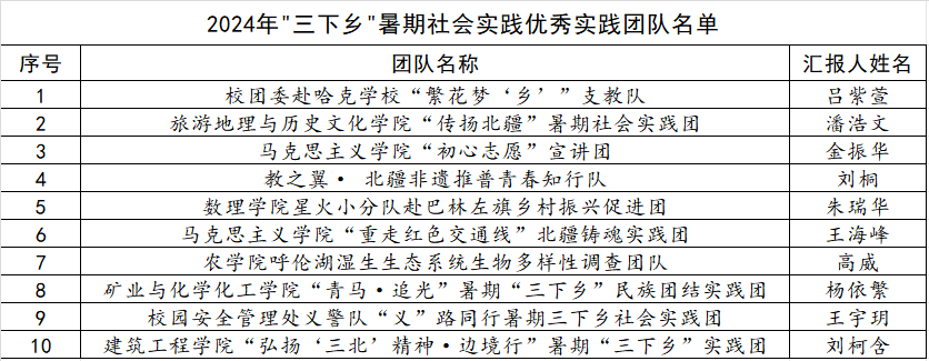 經過現場匯報、評委打分等環節,我校10支實踐團隊榮獲“優秀實踐團隊”稱號。
