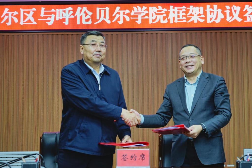 11月29日,我校與海拉爾區(qū)人民政府簽訂戰(zhàn)略合作框架協(xié)議,推動校地合作邁上新臺階。校黨委書記李文閣,校黨委副書記、校長張玉柱,海拉爾區(qū)委副書記、政府區(qū)長于民等區(qū)領導出席簽約儀式。