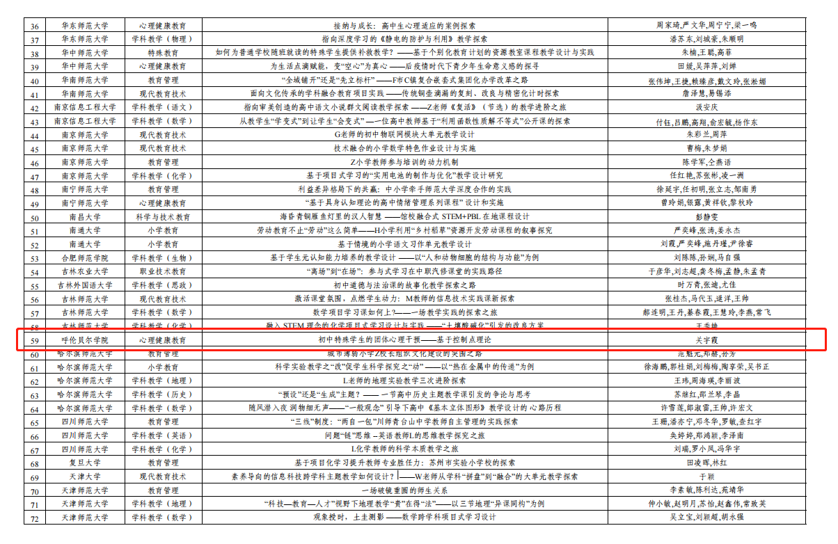 近日,全國教育專業(yè)學(xué)位研究生教育指導(dǎo)委員會發(fā)布了第六屆教育專業(yè)學(xué)位教學(xué)案例征集工作評審結(jié)果。本屆教學(xué)案例征集工作共收到全國123個單位提交的808篇教學(xué)案例,經(jīng)全國教育專業(yè)學(xué)位研究生教育指導(dǎo)委員會組織專家初審、初評、復(fù)評、修改后再評審和終評,最終有229篇教學(xué)案例通過評審。我校教育學(xué)院關(guān)宇霞老師撰寫的《初中特殊學(xué)生的團(tuán)體心理干預(yù)——基于控制點(diǎn)理論》通過評審,成功入選專業(yè)學(xué)位教學(xué)案例中心案例庫。這是我校首個入選中國專業(yè)學(xué)位案例中心案例庫的教學(xué)案例。
