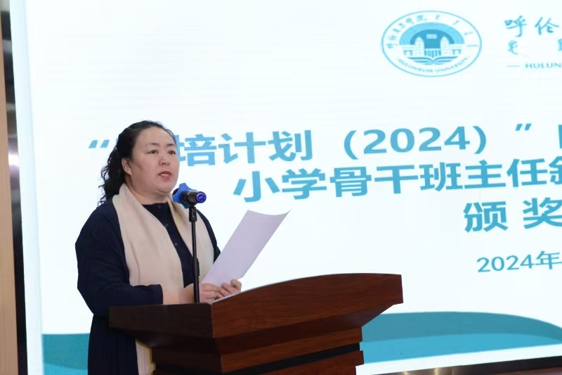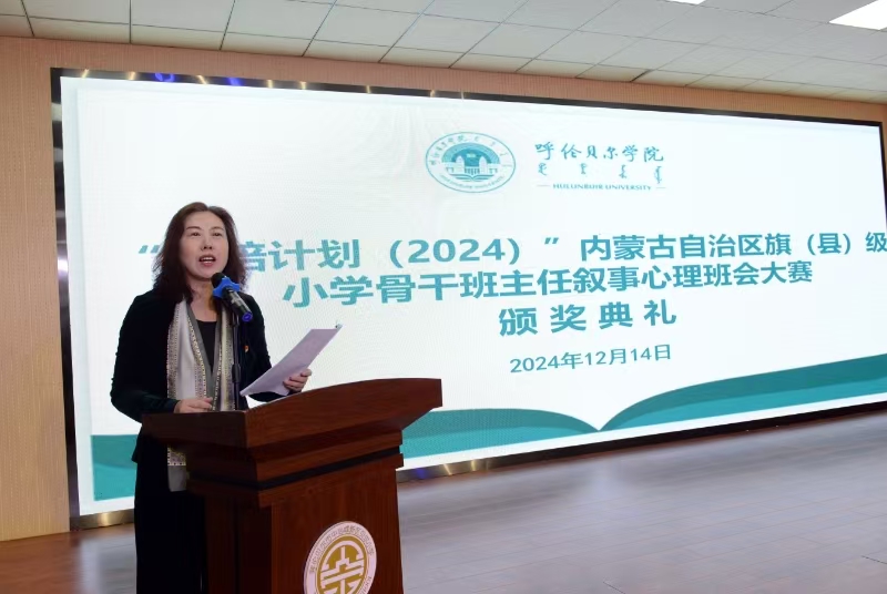 12月14日上午,呼倫貝爾學院“國培計劃(2024)”內蒙古自治區旗縣級小學骨干班主任敘事心理班會大賽頒獎典禮在貝爾小學舉行。我校黨委委員、副校長李躍武,南京心理學會秘書長趙兆,南京市秦淮區教師發展中心正校級調研員羅京寧,深圳市宇澤公益基金會理事長吳虹,海拉爾區教育研修中心副主任畢秀芝,我校繼續教育學院院長莎茹莉、教育學院院長李偉艷參加了典禮并頒獎。專家評委團隊、參賽學員們以及來自海拉爾區的骨干班主任們共同參加了頒獎典禮。