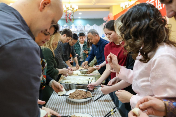 來自不同國家的老師和學生們圍坐在一起,共同學習如何制作中國傳統美食——包餃子。他們相互傳授技巧,分享心得,更在互動中加深了對中國文化的了解和喜愛,也進一步增進了彼此之間的友誼。