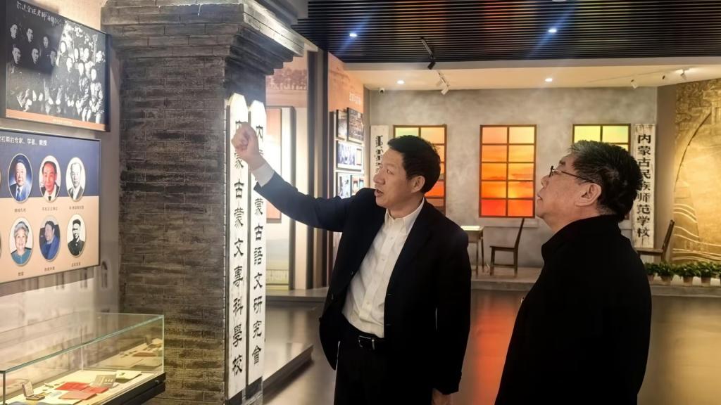 考察調研期間,李文閣一行先后參觀了呼和浩特民族學院校史館、鑄牢中華民族共同體意識教育館、非遺體驗館等場地。