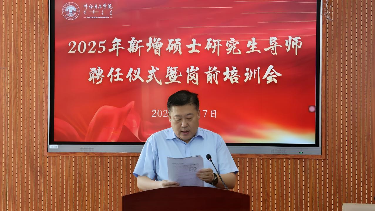 為進一步強化研究生導師隊伍建設,導師育人能力與責任,5月7日下午,我校在崇文樓A501會議室舉辦2025年新增研究生導師聘任儀式暨崗前培訓會。校黨委副書記、校長張玉柱,校黨委委員、副校長尹立軍出席會議,校內(nèi)外導師代表,研究生培養(yǎng)單位負責人等近80人共同參會。會議由研究生處處長姜明紅主持。
