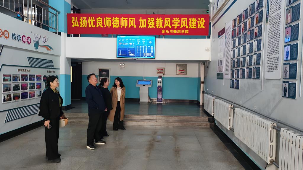 調研期間,尹立軍一行深入教學區、教室、教研室、辦公室及資料室,實地查看教學環境,細致檢查進校材料、案頭材料準備情況,全面了解迎接師范類專業認證專家進校考查準備工作。